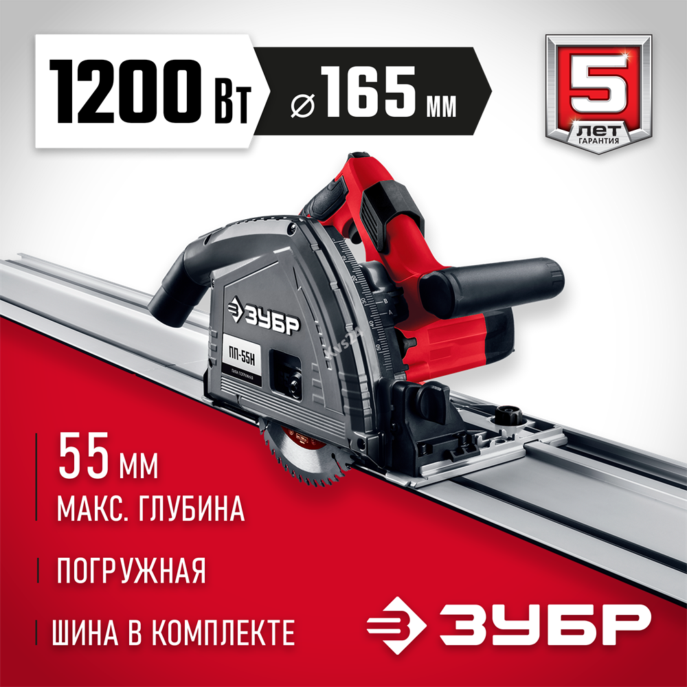 ЗУБР d 165 мм, 1200 Вт, погружная пила с шиной 1.4 м (ПП-55Н)