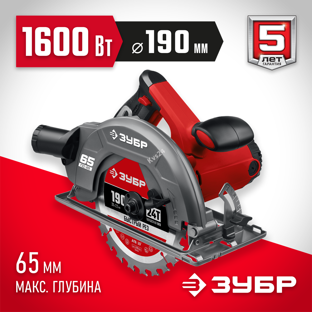 ЗУБР d 190 мм, 1600 Вт, циркулярная пила (дисковая) (ПД-65)