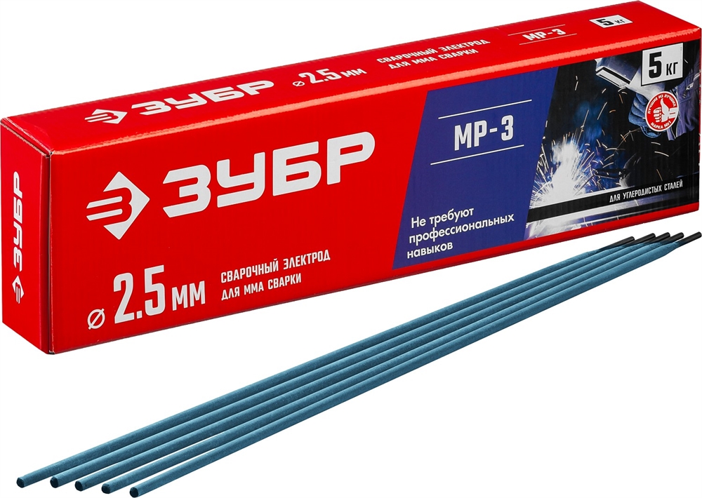ЗУБР Д 2.5 х 350 мм, 5 кг в коробке, МР-3 рутиловый, электрод сварочный (40015-2.5)