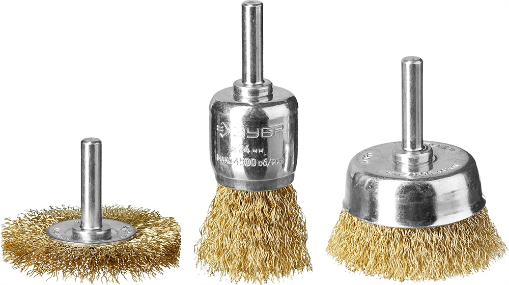 ЗУБР d 24/50/50 мм, витая стальная латунированная проволока 0.3 мм, набор щеток для дрели, Профессионал (3530-H3)
