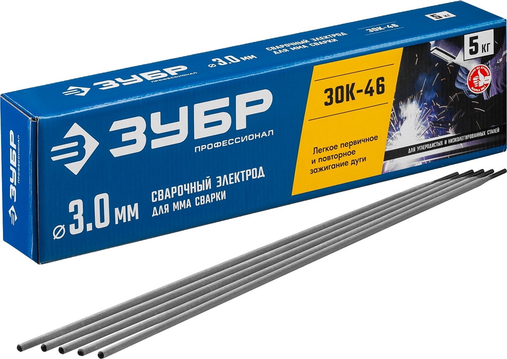 ЗУБР Д 3.0 х 350 мм, 5 кг в коробке, ЗОК-46 рутил-целлюлозный, электрод сварочный, Профессионал (40035-3.0) сертифицирован производителем ЗУБР, передача сертификатов осуществляется в момент отгрузки товара после обращения покупателя.