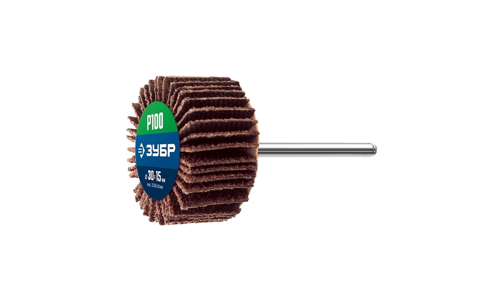 ЗУБР d 30 x 15 мм, P100, на шпильке d 3.2 мм, круг шлифовальный лепестковый, Профессионал (36600-100)