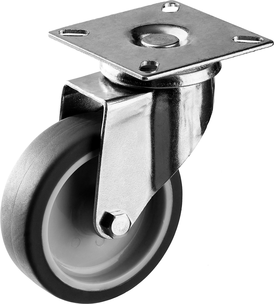- Термопластичная резина (твердость 85±5 Shore A) при скольжении не оставляет следов на полу. Это позволяет использовать данные колеса на деликатных покрытиях (паркет, ламинат, плитка и т.п.).