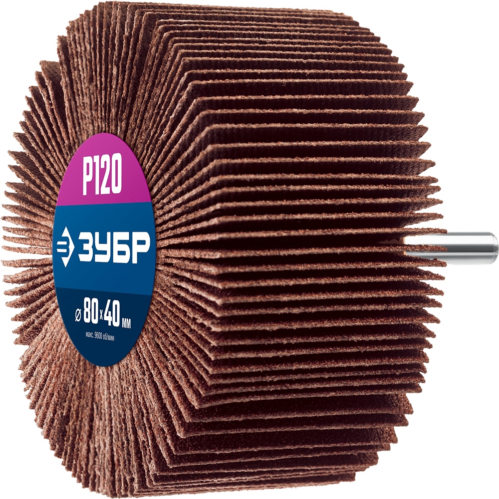 ЗУБР d 80 x 40 мм, P120, на шпильке d 6 мм, круг шлифовальный лепестковый, Профессионал (36604-120)
