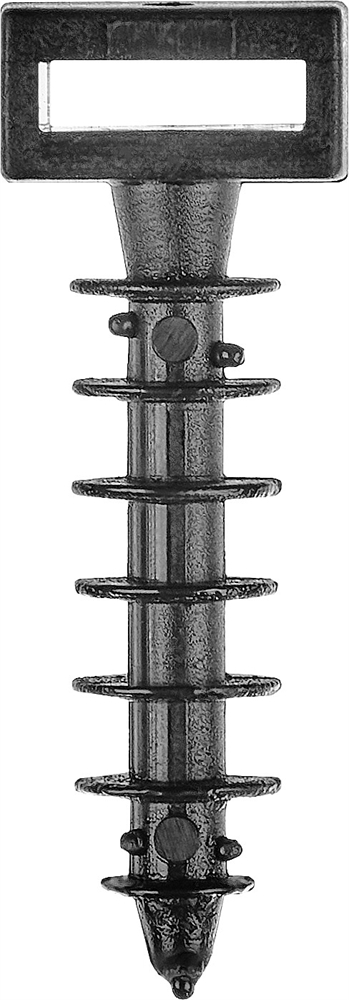 - Дюбель устанавливается в предварительно просверленное отверстие при помощи молотка или киянки. Кабельная стяжка продевается через прямоугольное отверстие в головке дюбеля.