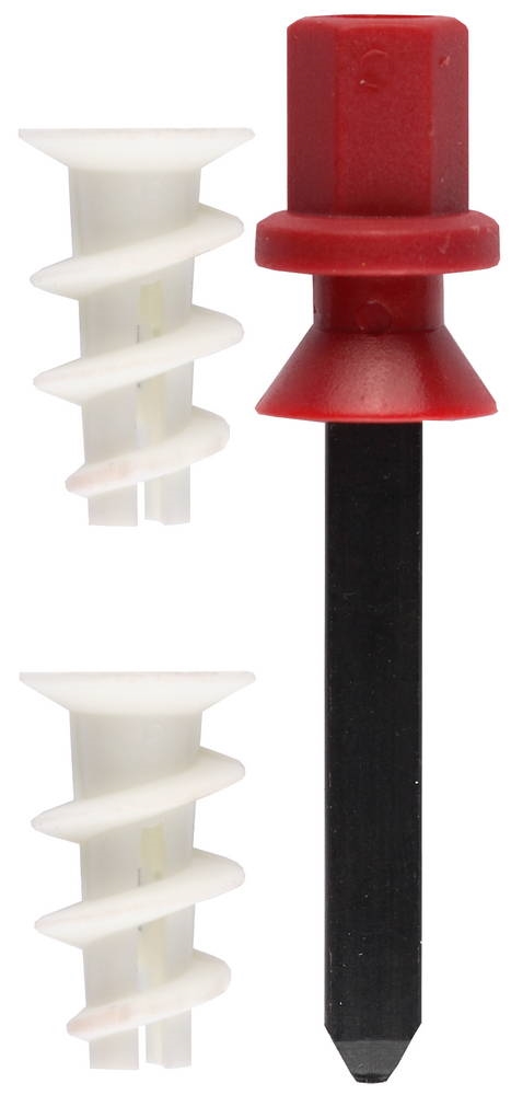 - Высокая резьба с крупным шагом увеличивает площадь контакта и фиксирует дюбель в гипсокартоне, не разрушая его