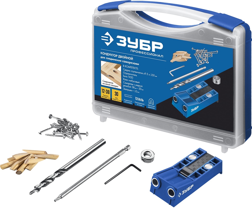 ЗУБР два отверстия, двойной кондуктор для глухих отверстий, Профессионал (30091)