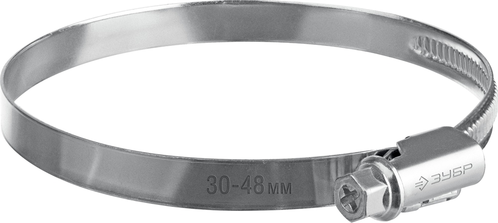 ЗУБР Х-9Н, 30 - 48 мм, накатная лента 9 мм, цинк, 50 шт, червячный хомут (37807-48) сертифицирован производителем ЗУБР, передача сертификатов осуществляется в момент отгрузки товара после обращения покупателя.