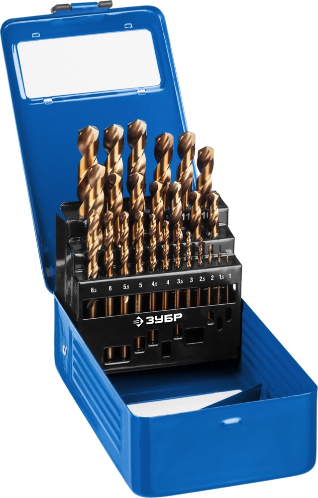 ЗУБР Кобальт, 25 шт, (1-13 мм), сталь Р6М5К5, класс А, мет.бокс, набор сверл по металлу, Профессионал (29626-H25)