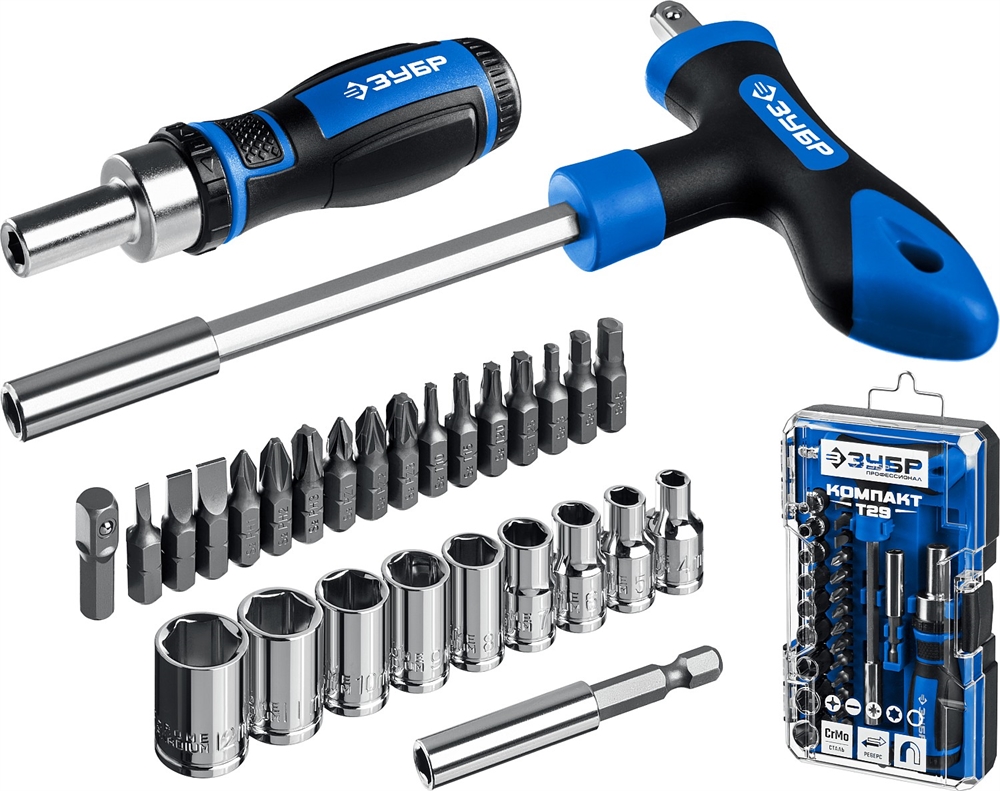 ЗУБР Компакт-Т29, 29 предм., реверсивная отвёртка с насадками, Профессионал (25168-H29)