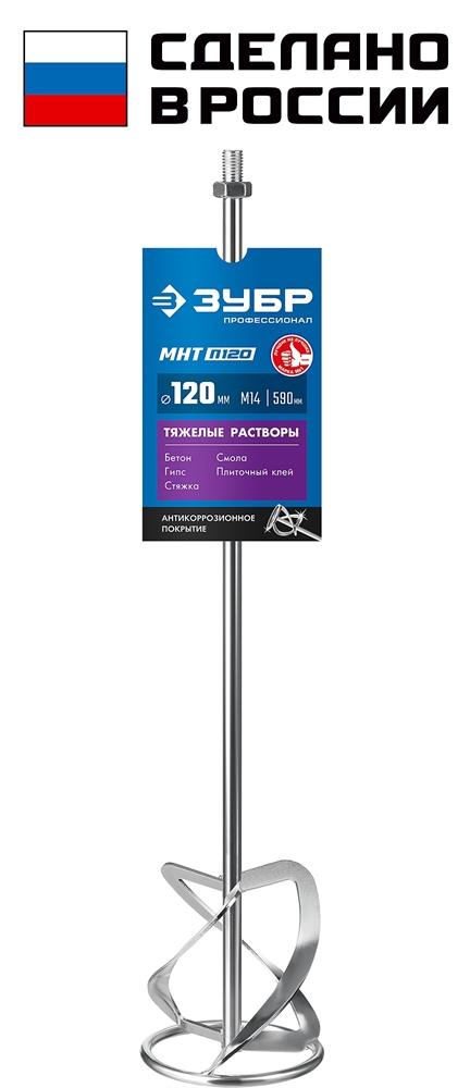 ЗУБР М14, d120 мм, насадка-миксер для тяжелых растворов ″снизу-вверх″, Профессионал (МНТ-П120) сертифицирован производителем ЗУБР, передача сертификатов осуществляется в момент отгрузки товара после обращения покупателя.