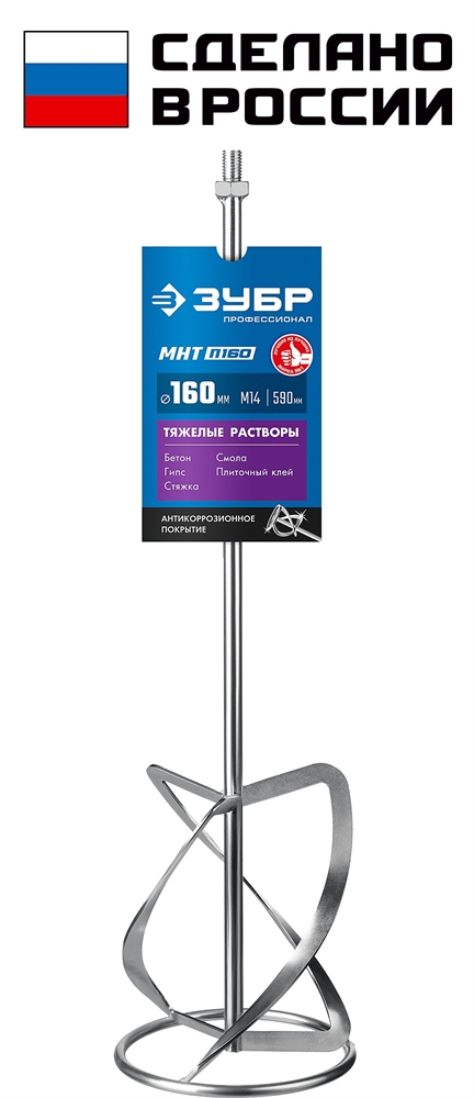 ЗУБР М14, d160 мм, насадка-миксер для тяжелых растворов ″снизу-вверх″, Профессионал (МНТ-П160) сертифицирован производителем ЗУБР, передача сертификатов осуществляется в момент отгрузки товара после обращения покупателя.