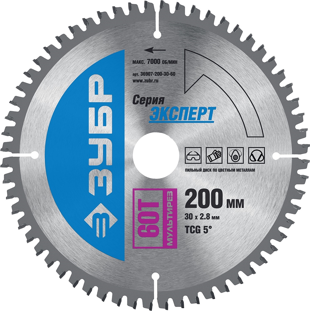 ЗУБР Мультирез, 200 x 30 мм, 60Т, пильный диск по алюминию, Профессионал (36907-200-30-60)