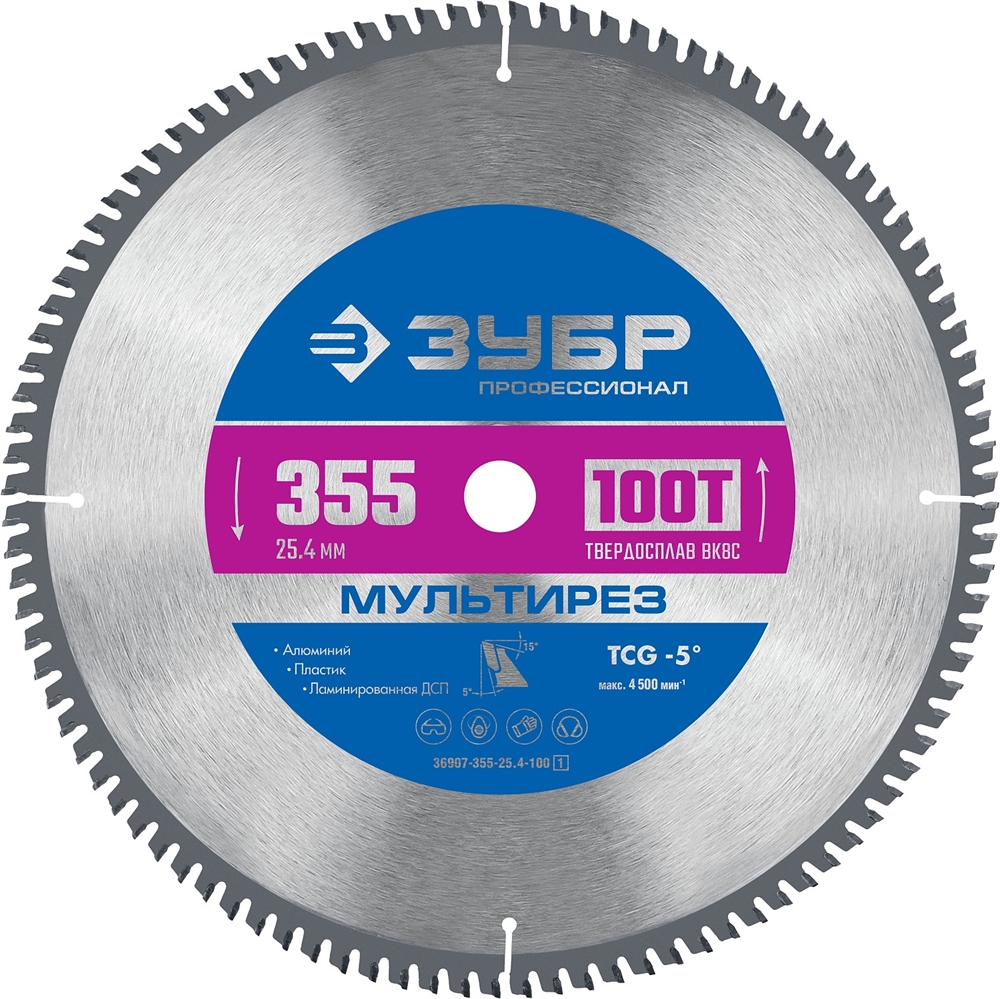 ЗУБР Мультирез, 355 х 25.4 мм, 100Т, пильный диск по алюминию, Профессионал (36907-355-25.4-100)