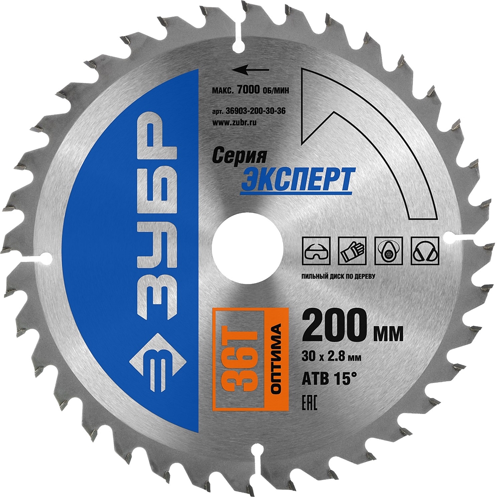 ЗУБР Оптима, 200 x 30 мм, 36Т, пильный диск по дереву, Профессионал (36903-200-30-36)