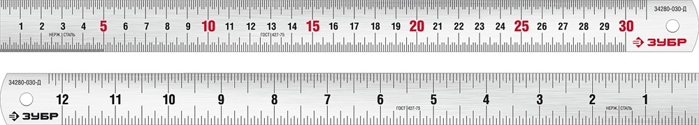 ЗУБР Про-30Д, длина 0.30 м, усиленная нержавеющая линейка, Профессионал (34280-030-Д)