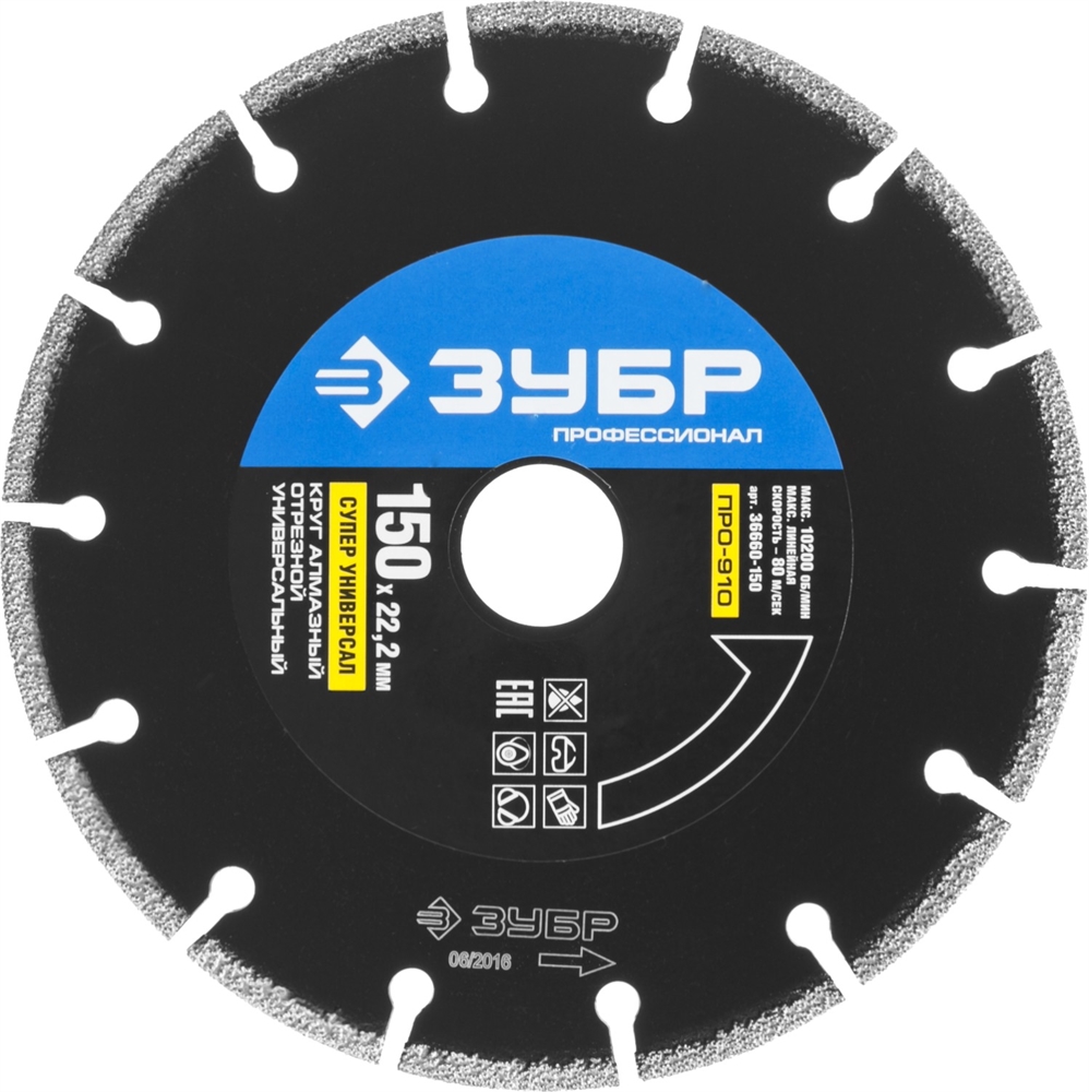 ЗУБР ПРО-910 Супер, 150 мм, (22.2 мм, 5 х 2.6 мм), сегментный алмазный диск, Профессионал (36660-150) сертифицирован производителем ЗУБР, передача сертификатов осуществляется в момент отгрузки товара после обращения покупателя.