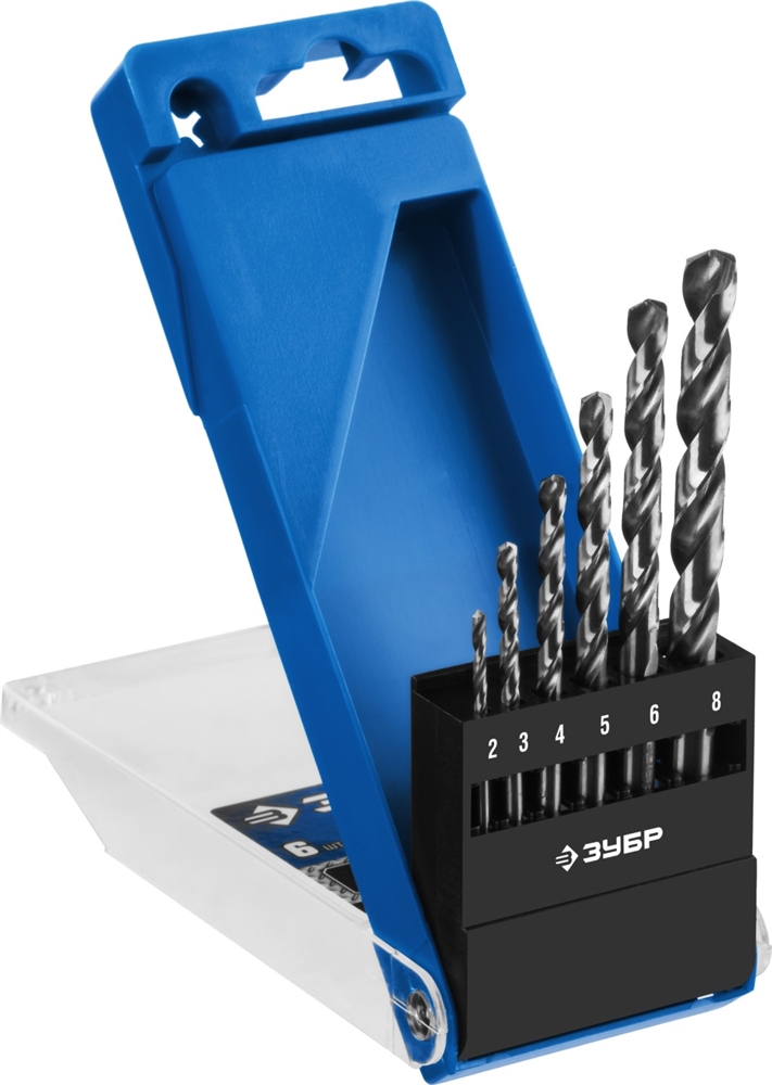 ЗУБР ПРОФ-А, 6 шт, (2-8 мм), сталь Р6М5, класс А, набор сверл по металлу, Профессионал (29625-H6)