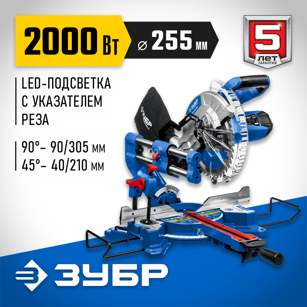 Торцовочная пила с протяжкой ЗУБР Профессионал d 255 ППТ-255-П