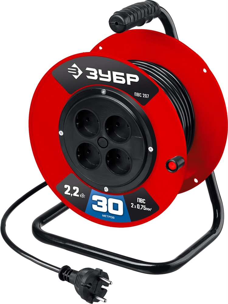 ЗУБР ПВС-207, ПВС, 2 х 0.75 мм2, 30 м, 2200 Вт, удлинитель на катушке (55083-30)