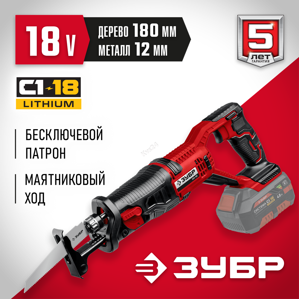 ЗУБР С1-18, 18 В, 180 мм, без АКБ, сабельная пила (СПЛ-185)