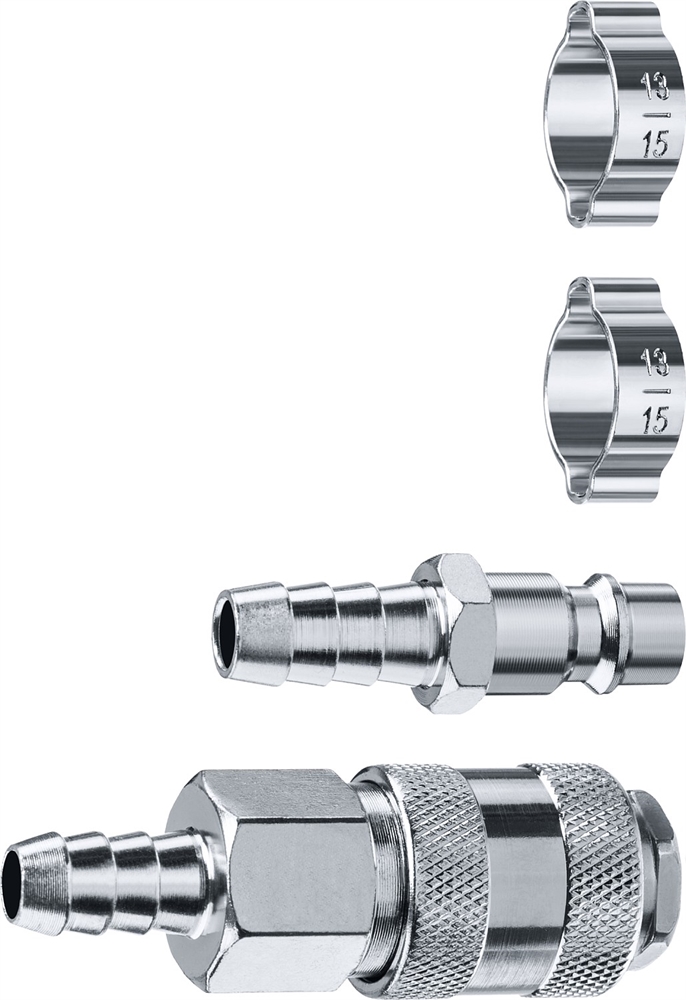 ЗУБР (штуцер ″елочка″, 10 мм - рапид муфта) + (рапид штуцер-штуцер ″елочка″, 10 мм) + (обжимные хомуты 2 шт), набор, Профессионал (64920-10-H)