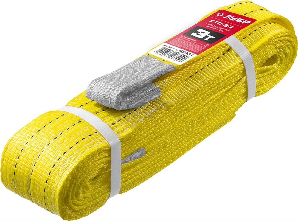 ЗУБР СТП-3/4, желтый, г/п 3 т, длина 4 м, текстильный петлевой строп (43553-3-4)