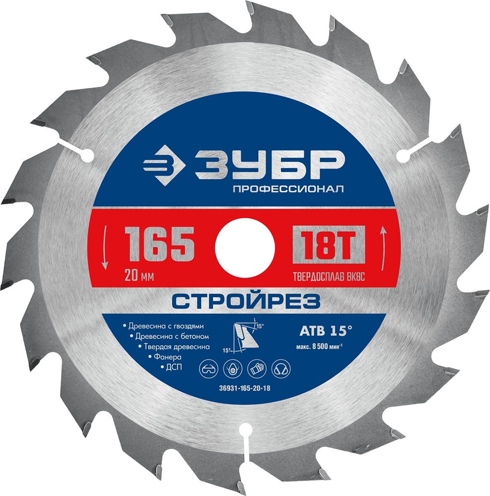 ЗУБР Стройрез, 165 х 20 мм, 18Т, пильный диск по строительной древесине, Профессионал (36931-165-20-18)