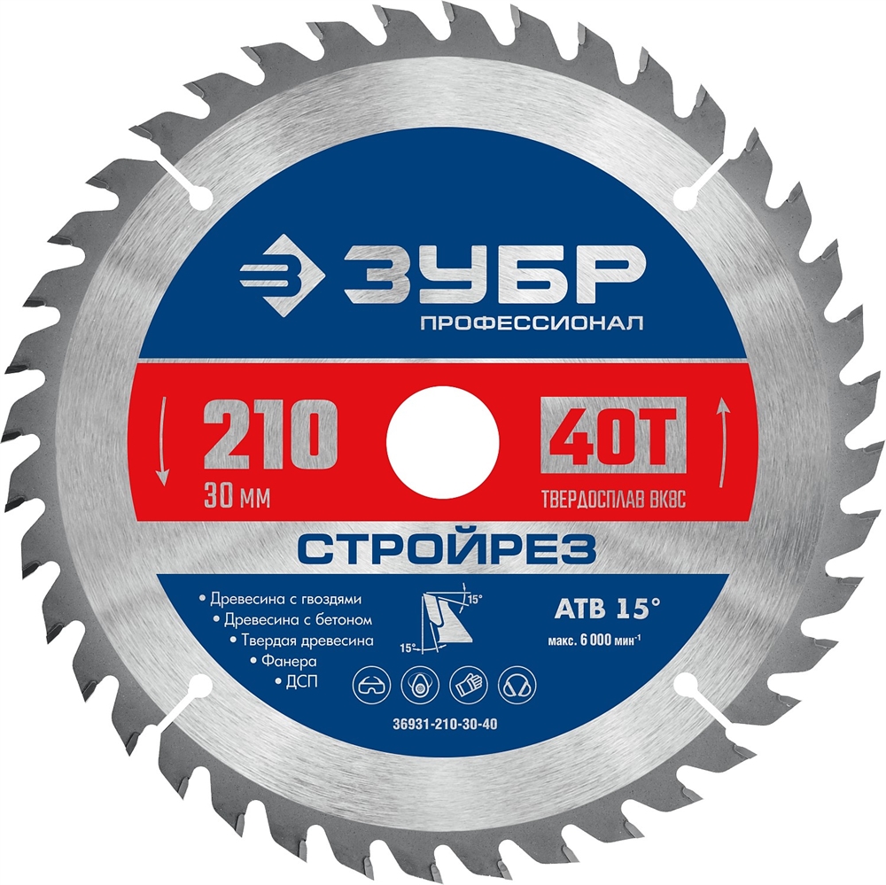 ЗУБР Стройрез, 210 х 30 мм, 40Т, пильный диск по строительной древесине, Профессионал (36931-210-30-40)