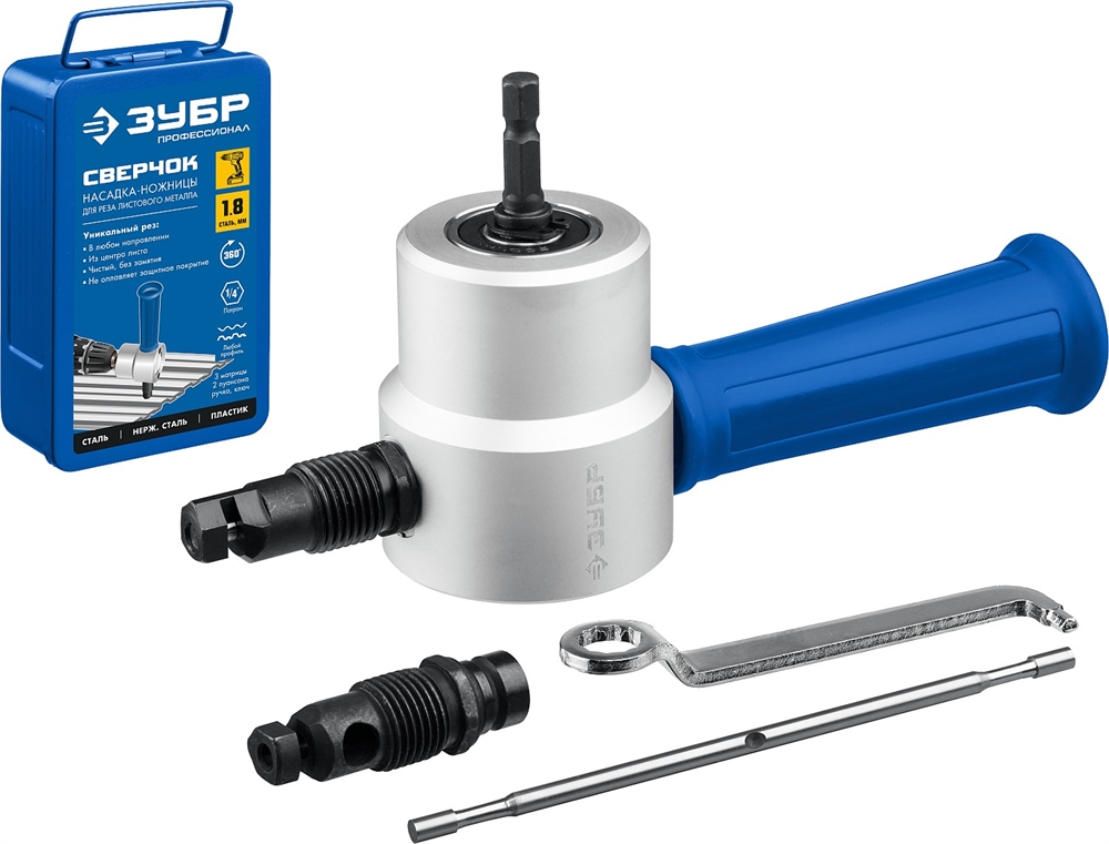 ЗУБР Сверчок, набор в кейсе, насадка-ножницы для реза листового металла, Профессионал (23294)