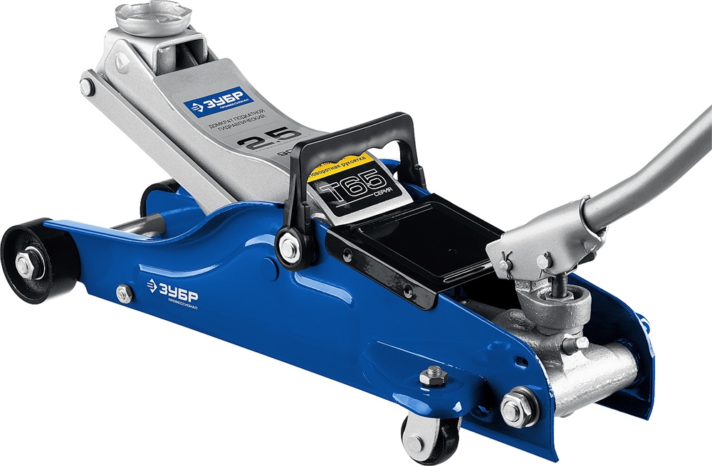 ЗУБР Т-65, 2.5 т, 90 - 360 мм, подкатной домкрат с низким подхватом и поворотной ручкой, Профессионал (43057-2.5)