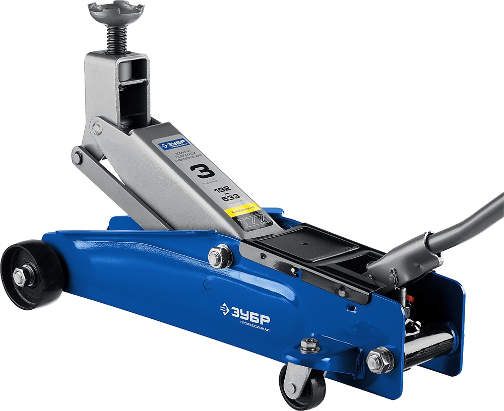 ЗУБР Т-77, 3 т, 192 - 533 мм, подкатной домкрат с высоким подъемом, Профессионал (43055-3)