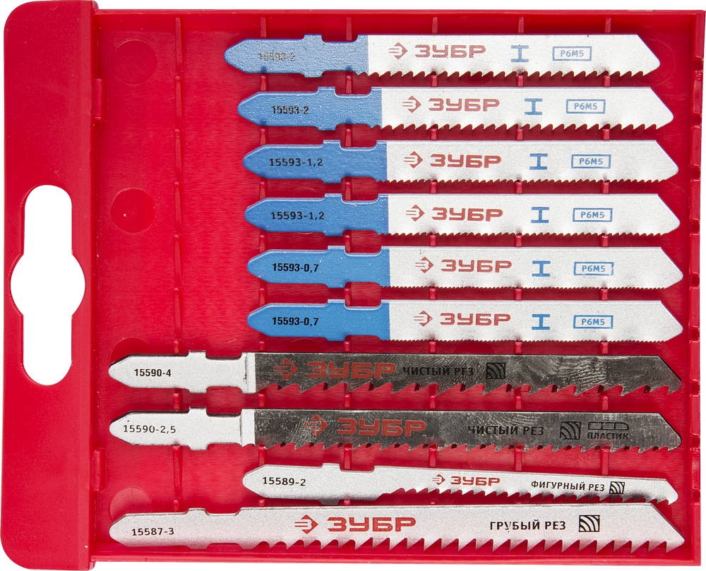 ЗУБР T-хвост., по дереву и металлу, пласт. бокс, 10 шт, набор полотен для лобзика (15586-H10)