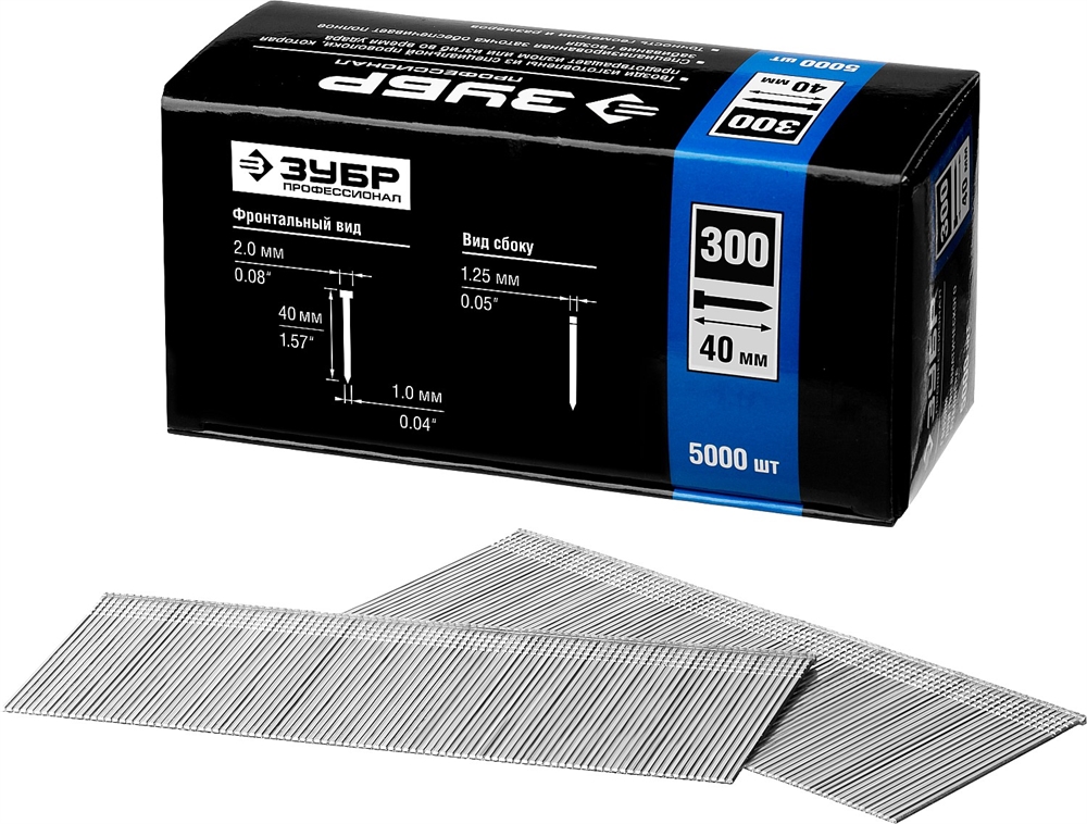 ЗУБР тип 18GA (47/300/F) 40 мм, 5000 шт, гвозди для нейлера, Профессионал (31830-40)