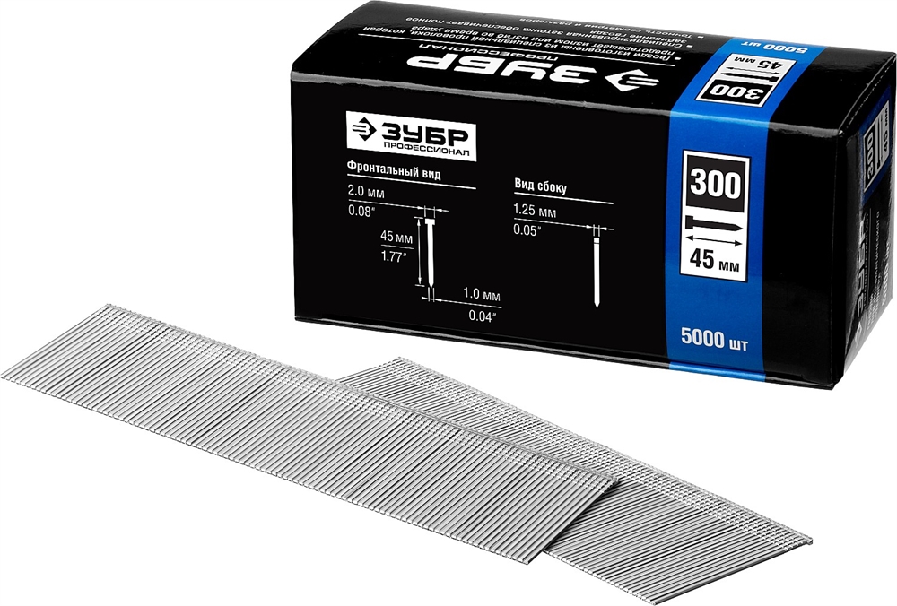 ЗУБР тип 18GA (47/300/F) 45 мм, 5000 шт, гвозди для нейлера, Профессионал (31830-45)