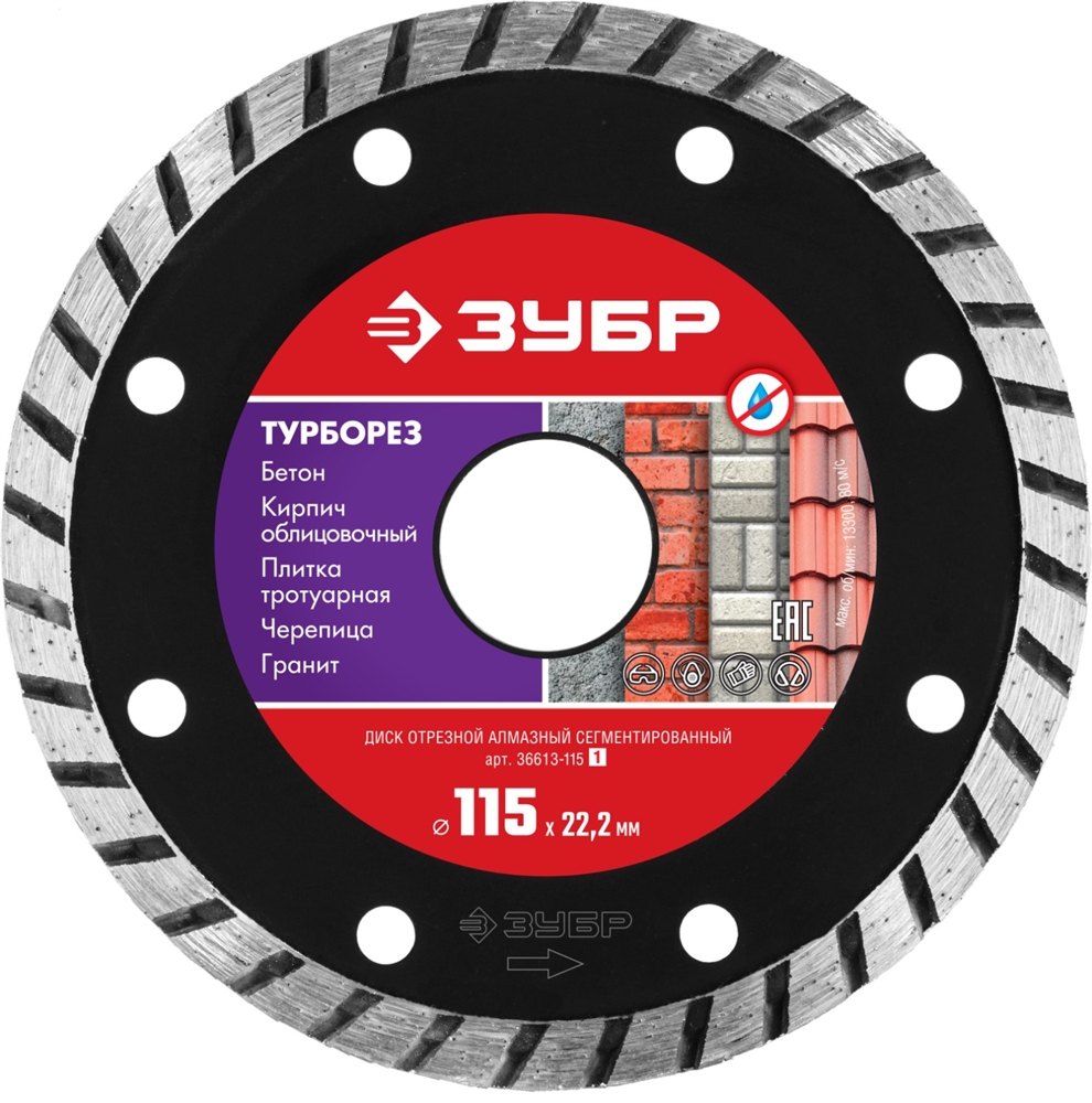 ЗУБР Турборез, 115 мм, (22.2 мм, 7 х 2.4 мм), сегментированный алмазный диск (36613-115) сертифицирован производителем ЗУБР, передача сертификатов осуществляется в момент отгрузки товара после обращения покупателя.