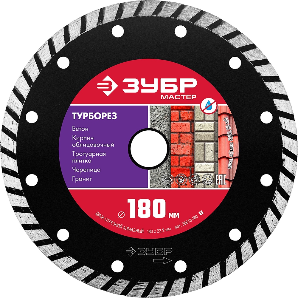 ЗУБР Турборез, 180 мм, (22.2 мм, 7 х 2.6 мм), сегментированный алмазный диск (36613-180)
