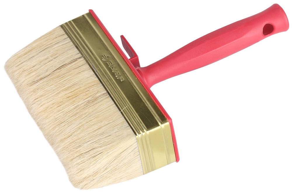 Отличное решение для работы со всеми типами ЛКМ, а так же грунтовки, побелки на большие поверхности, клеевых составов на обои, размывки потолков. Щетина кисти надежно закреплена бандажом из никелированной стали, а наличие удобной пластмассовой рукоятки обеспечит комфортную работу