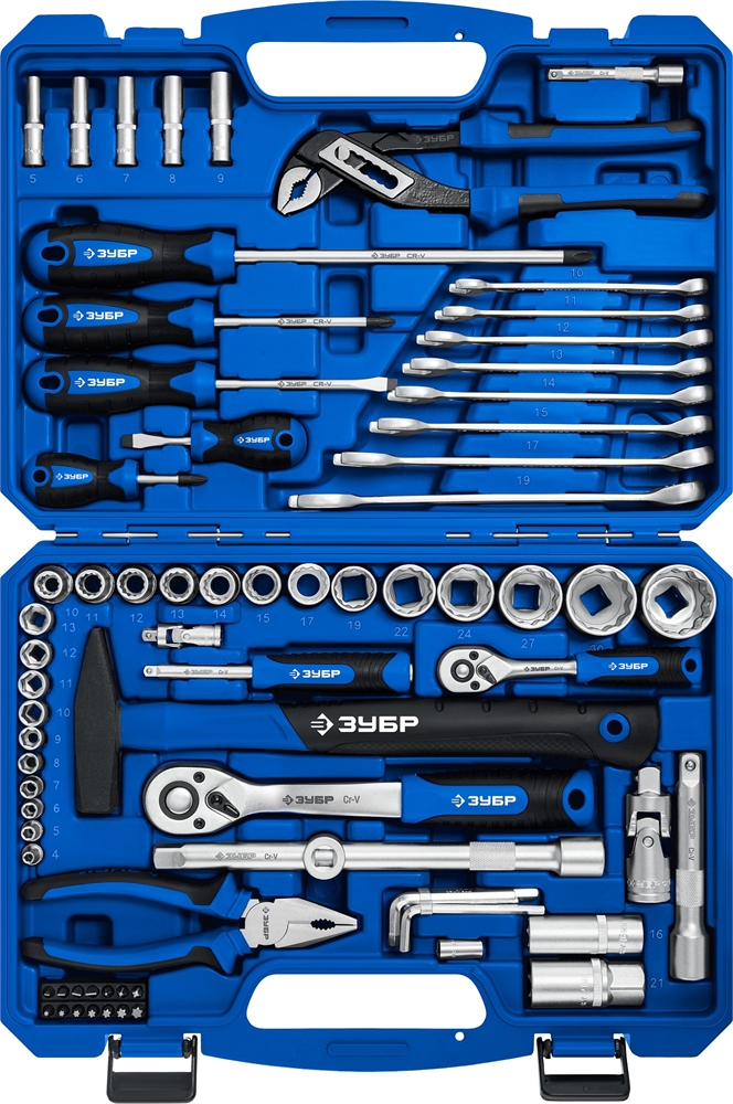 ЗУБР Универсал-76, 76 предм., (1/2″+ 1/4″), универсальный набор инструмента, Профессионал (27670-H76)