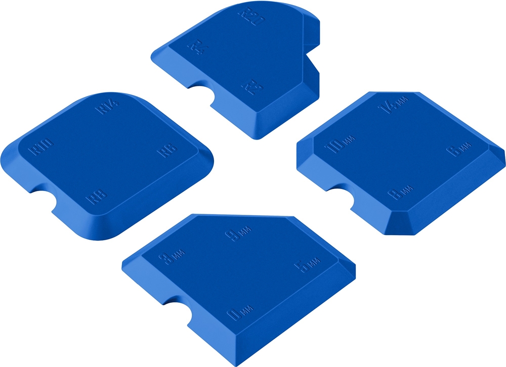 4 небольших силиконовых шпателя имеют по 4 различных размера и радиуса для придания формы шву герметика.