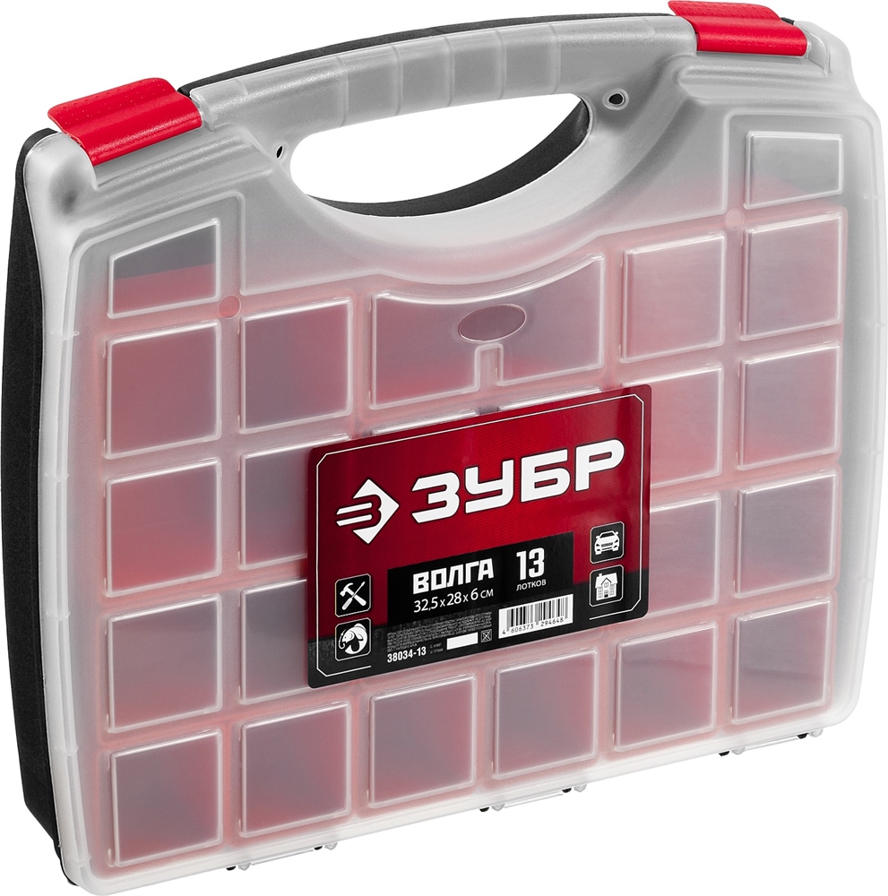 ЗУБР ВОЛГА-13, 325 х 280 х 60 мм, пластиковый органайзер с 13 съемными лотками (38034-13)