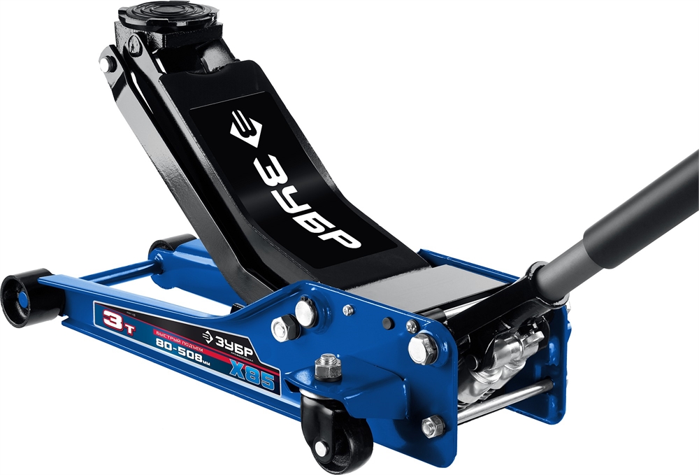 ЗУБР X85, 3 т, 80 - 508 мм, универсальный гидравлический подкатной домкрат для СТО, Профессионал (43051-3)