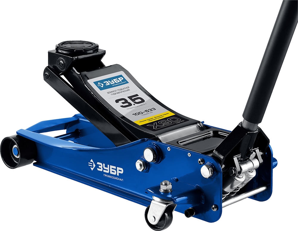 ЗУБР X90, 3.5 т, 100 - 533 мм, универсальный подкатной гидравлический домкрат для СТО, Профессионал (43054-3.5)